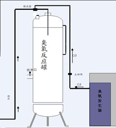 1.4氧化塔上端側部進水,下端側部出水,水自上而下流經氧化塔,與氣相的臭氧氣泡形成逆流,提高混合效率。